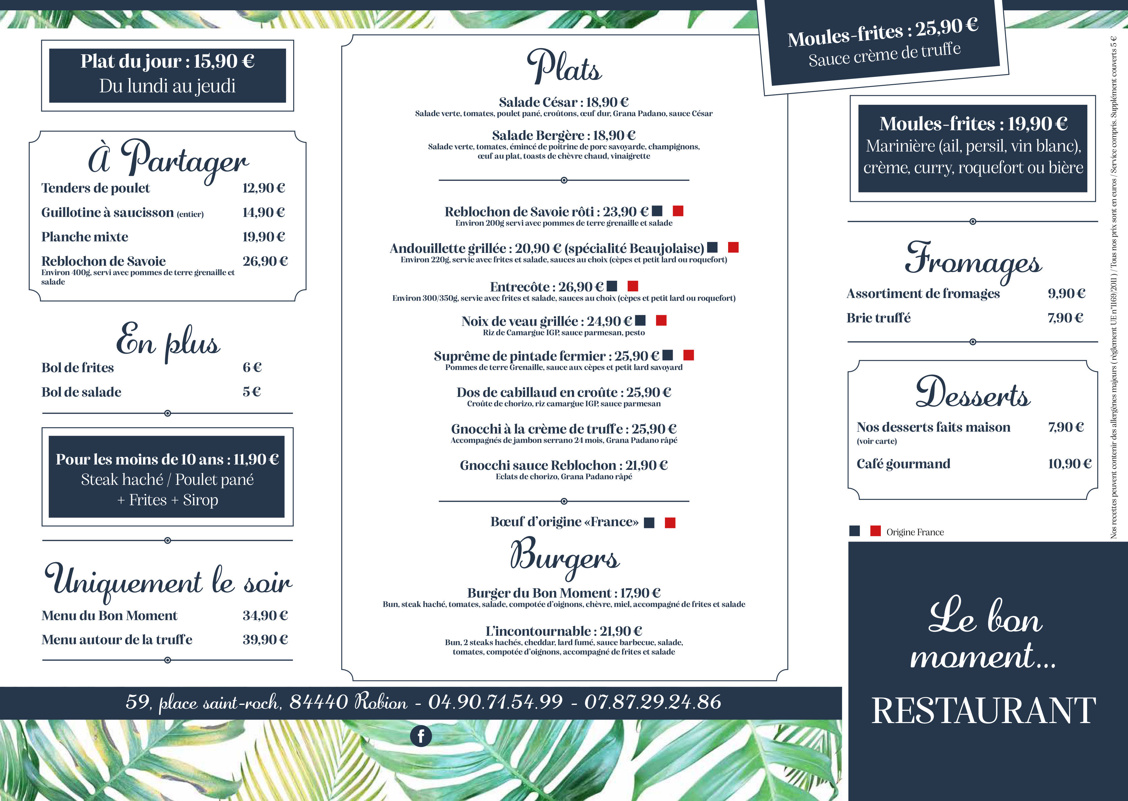 🔥 En soirée, découvrez aussi notre Menu du Bon Moment et le Menu autour de la truffe – pour un vrai instant cocooning à partager.